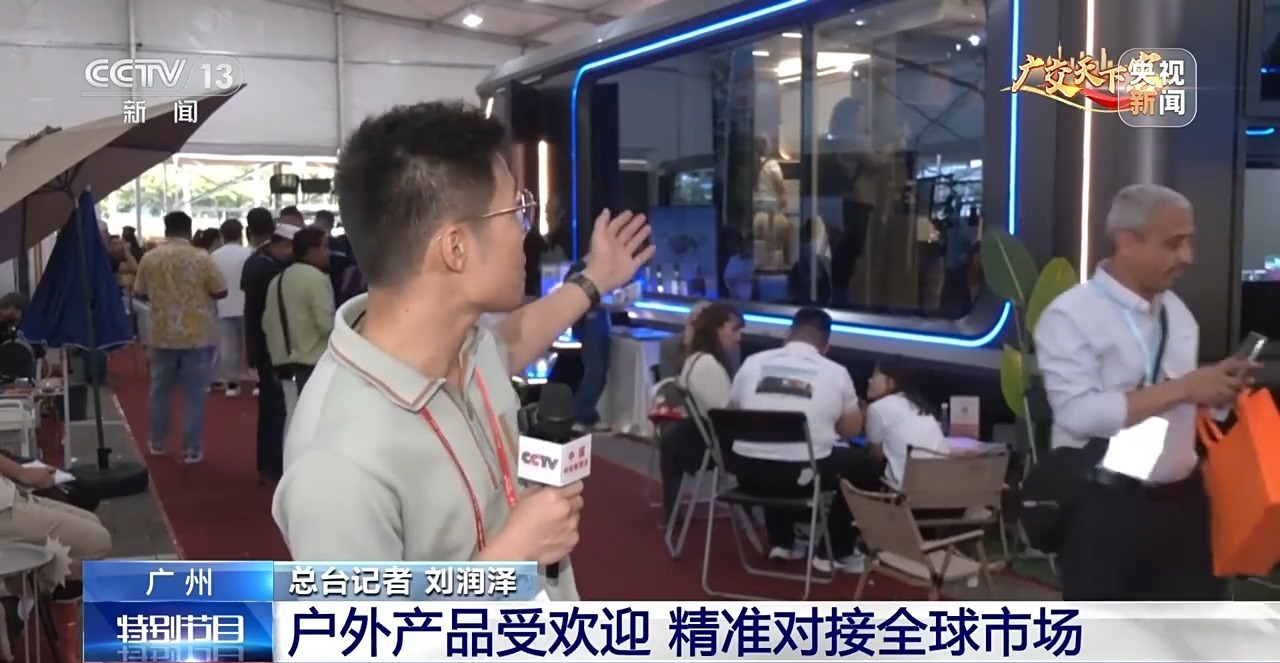 记者刘润泽总部:在广交会展馆B区,这个太空舱受到来自世界各地采购商的青睐,这两天已经签下了很多订单。
