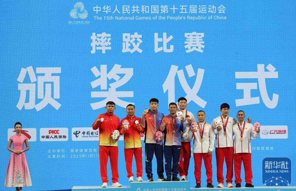 11月11日,第十五届全运会摔跤男子74公斤级自由泳比赛在广东清远举行。广西选手陆峰夺得冠军。 ↑ 获得冠军的广西队球员陆峰(左四)、获得亚军的新疆队球员阿合友图尔荪(左二)、获得季军的内蒙古队球员巴图庆勒(右四)、云南队球员金文猛(右二)在颁奖典礼上与教练合影。 ↑ 获得冠军的广西队球员吕峰(左五)、获得第二名的新疆队球员阿合友吐尔逊(左)、获得第三名的内蒙古队球员巴图庆乐(右四)、云南队球员金文猛(右二)在颁奖典礼上与教练及嘉宾合影。 ↑ 广西队选手陆峰(左)与新疆队选手阿黑图尔荪在金牌争夺战中。 ↑ 广西队球员陆峰(上)与新疆队球员阿希图尔逊在金牌争夺战中。 ↑ 铜牌中的云南队选手金文猛(下)和重庆队选手黄锦斌。最终,金文猛获得第三名。 ↑ 铜牌中的云南队选手金文猛(右)和重庆队选手黄锦斌。最终,金文猛获得第三名。 ↑ 铜牌中的内蒙古队选手巴图庆勒(右)和新疆队选手加尼博塔·杰肯。最终巴图庆乐获得第三名。 ↑ 铜牌中的云南队选手金文猛(右)和重庆队选手黄锦斌。最终,金文猛获得第三名↑铜牌中内蒙古队选手巴图庆勒(右)和新疆队选手加尼博塔·杰肯。最终巴图庆乐获得第三名。 ↑ 铜牌中的云南队选手金文猛(右)和重庆队选手黄锦斌。最终,金文猛获得第三名。 ↑ 广西队球员陆峰(右)庆祝夺冠比赛结束后p。新华社记者 李然 摄