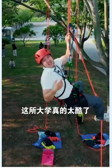 “通过爬树这项运动,我有幸以独特的视角看到校园景色!”